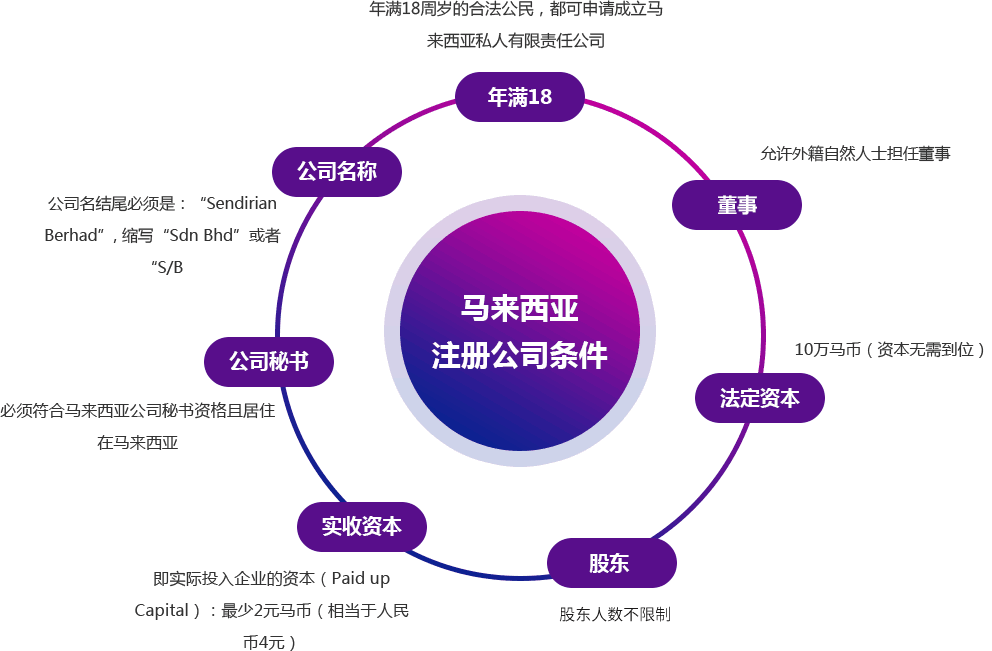 擬定馬來西亞公司注冊英文名稱;至少1名董事、股東的護(hù)照復(fù)印件或者身份證復(fù)印件、股份分配、委托書、章程、公司設(shè)立的目的及主營項(xiàng)目等。